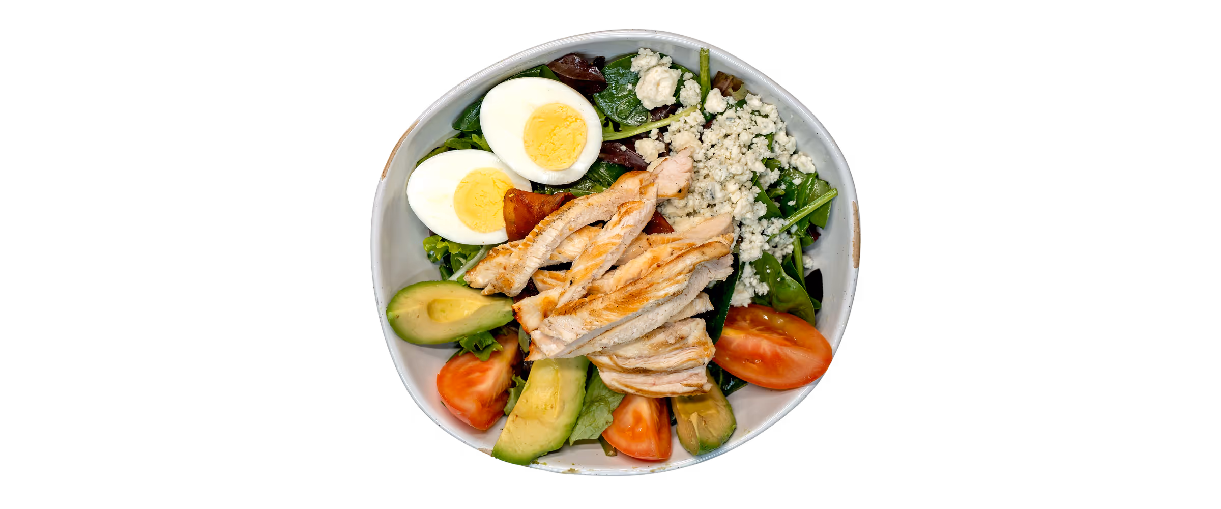 Red and White Quinoa Mix with Brunoise of Roasted Zucchini, Eggplant, Bell Pepper, Cucumber, Fresh Herbs. Served with Avocado, Cherry Tomatoes, Alfalfa Sprouts, Lemon Vinaigrette